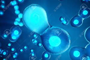Human or animal cells on blue background. Concept Early stage embryo Medicine scientific concept, Stem cell research and treatment. 3D illustration.